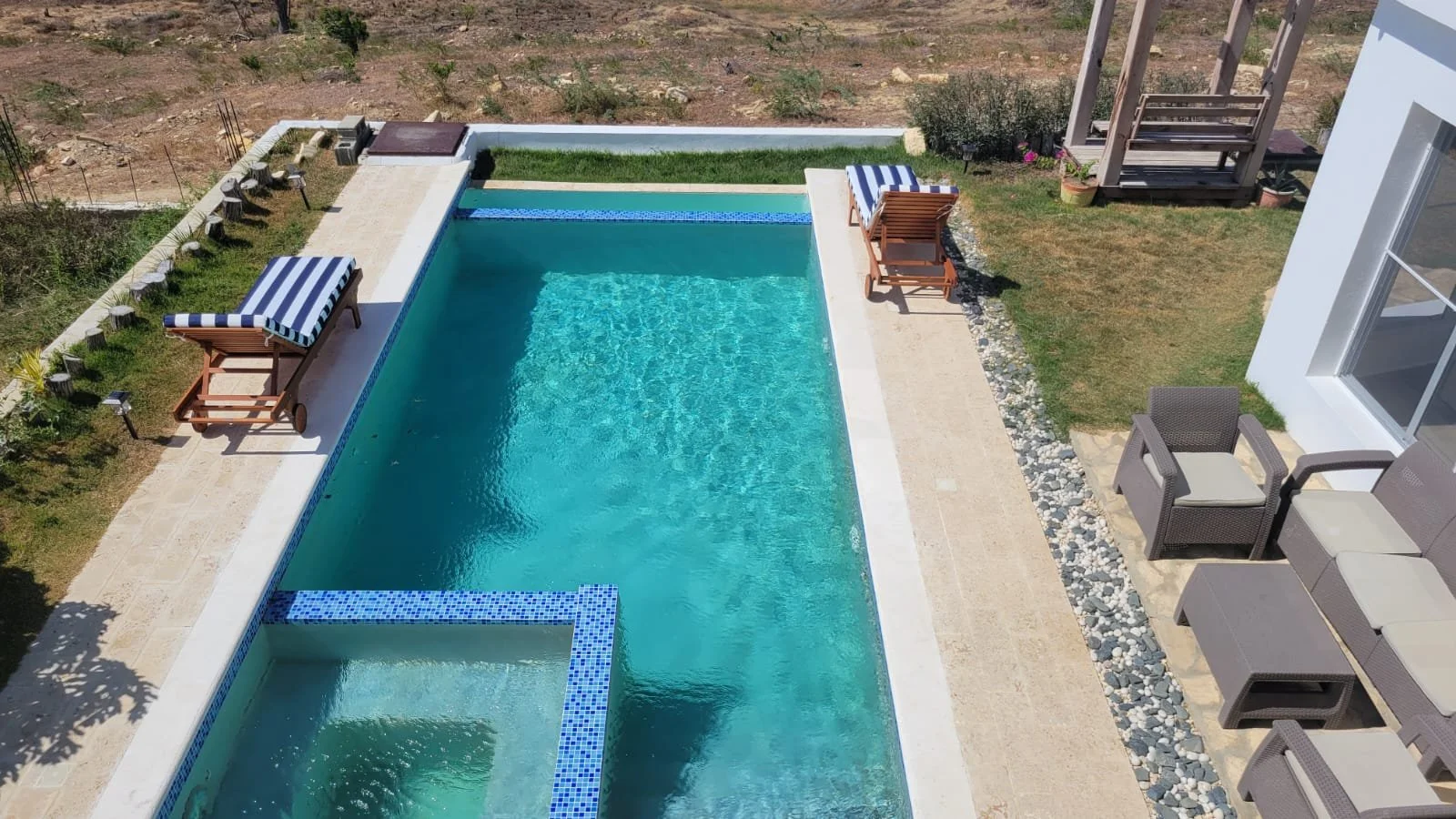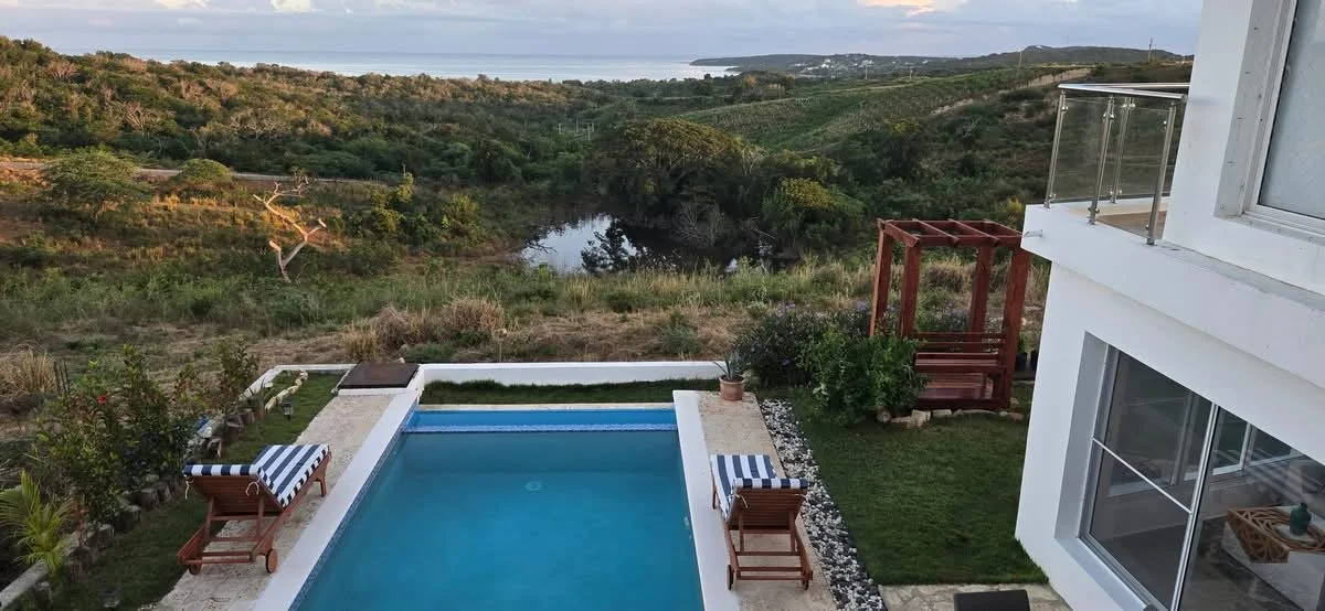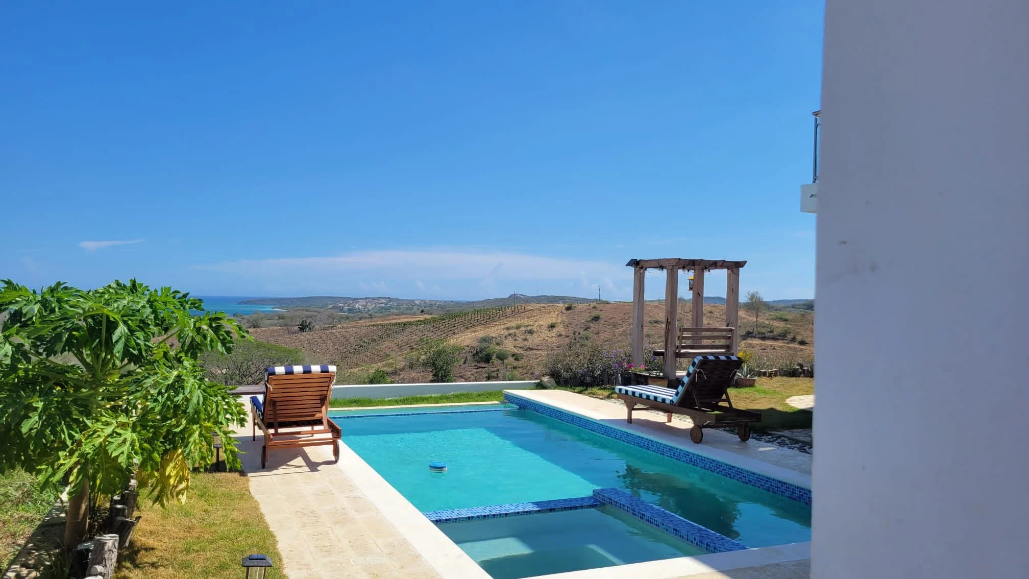 The Villa is located on top of hill overlooking the ocean and the mountains as well. It has a pool and Jacuzzi facing the ocean.